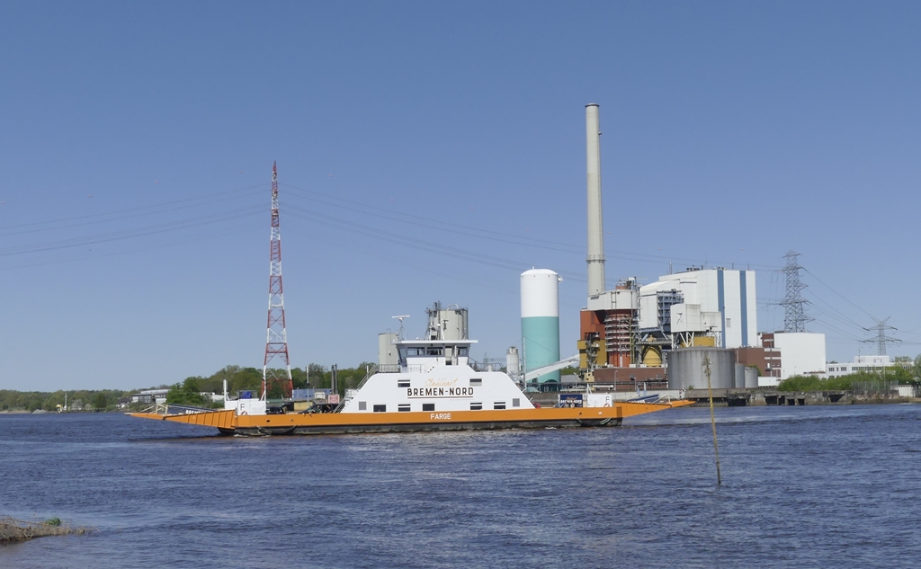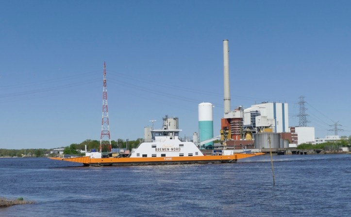Kraftwerk Farge mit Fähre „Bremen-Nord“ im Vordergrund