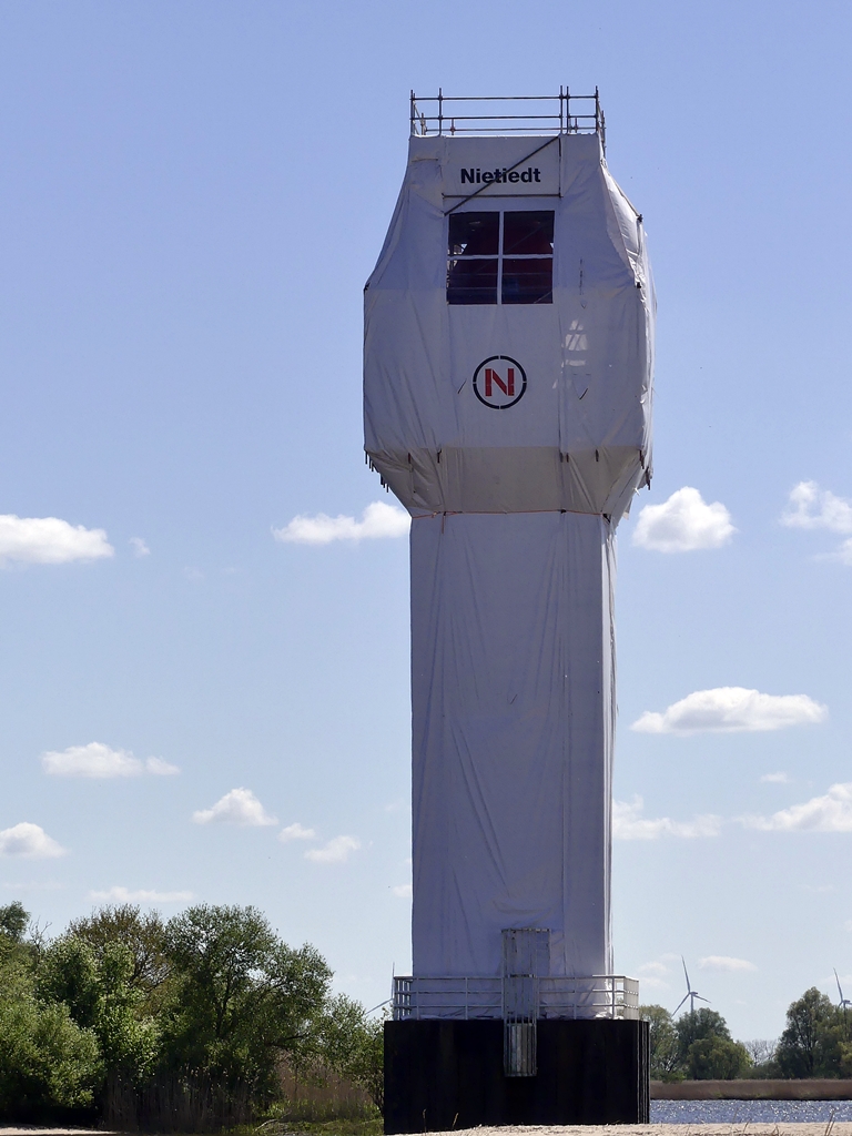 Ein kleinerer Leuchtturm, der eingerüstet war
