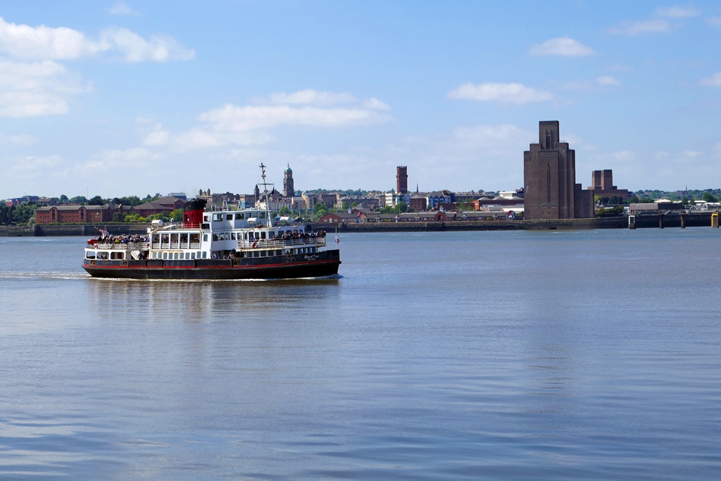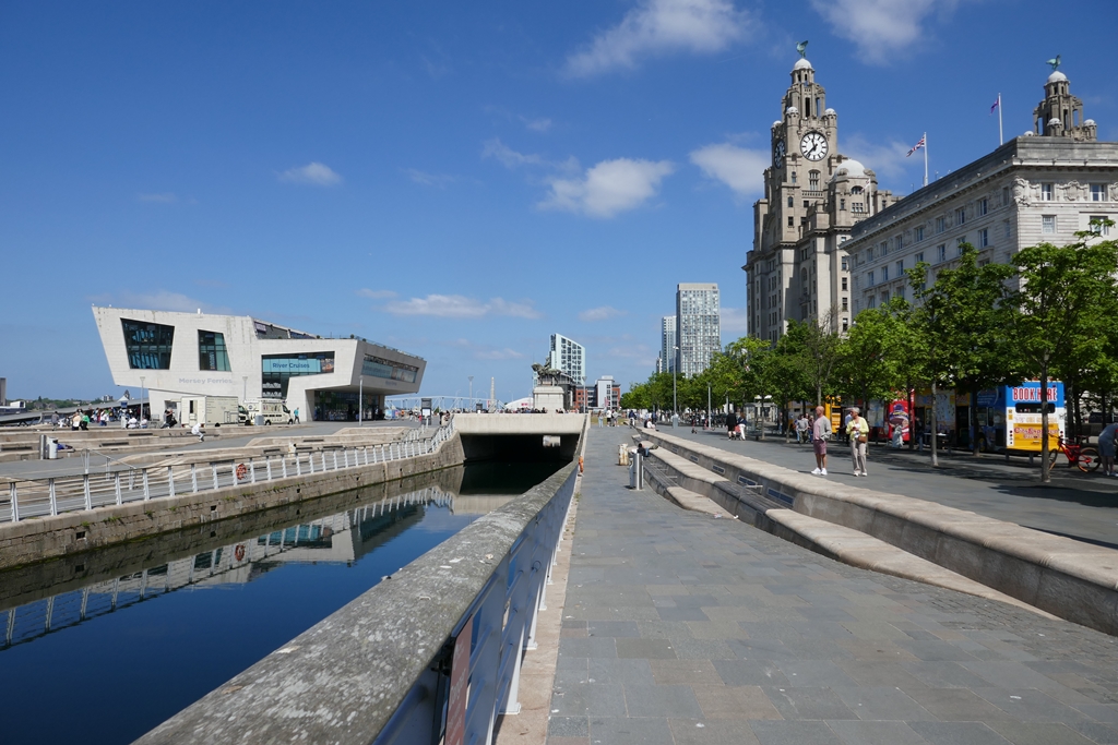 „Ferry cross the Mersey“ – viele kennen das Lied. Das Hochhaus ist kein Wohngebäude, sondern ein Lüftungsschaft auf der Seite von Birkenhaed für den Mersey-Tunnel
