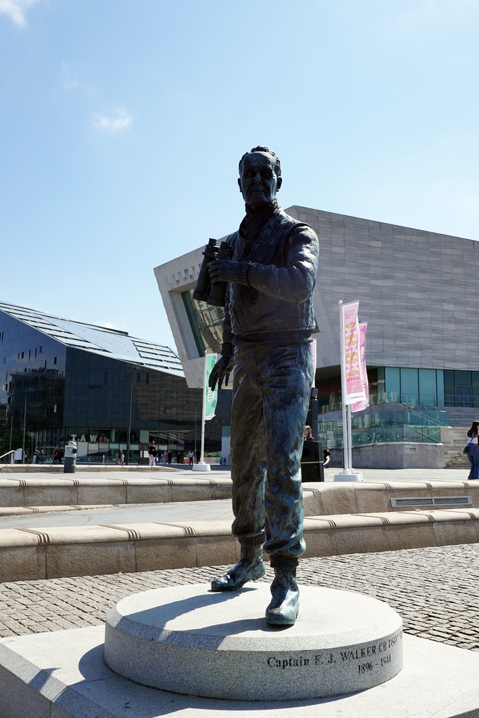 Das Denkmal steht vor dem „The British Music Experience Museum“, das Gebäude gehört der Cunard Reederei