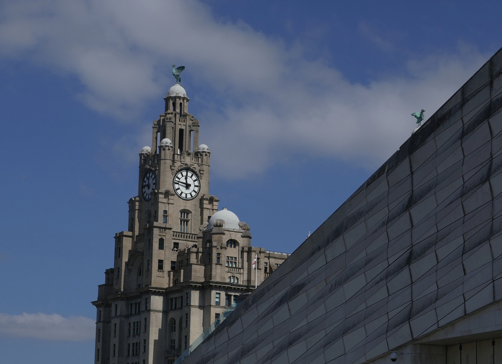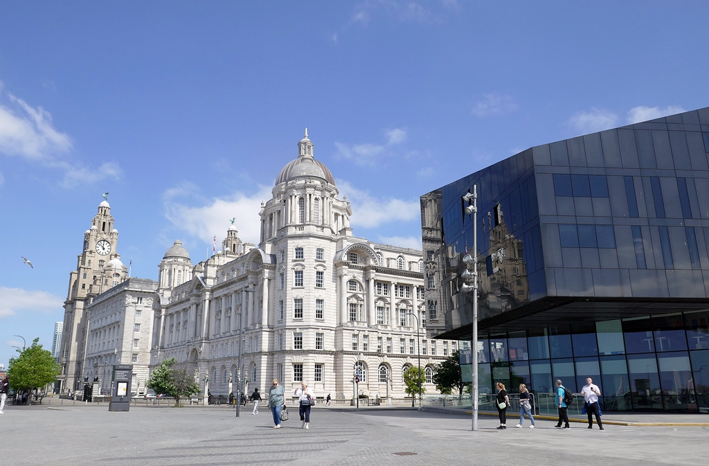 „The Port of Liverpool“ Building und rechts die „Open Eye Gallery“