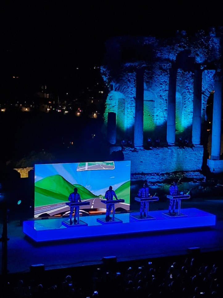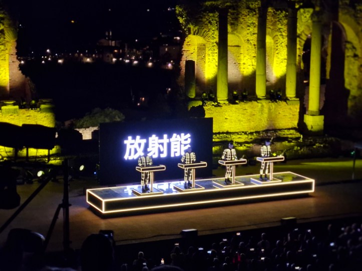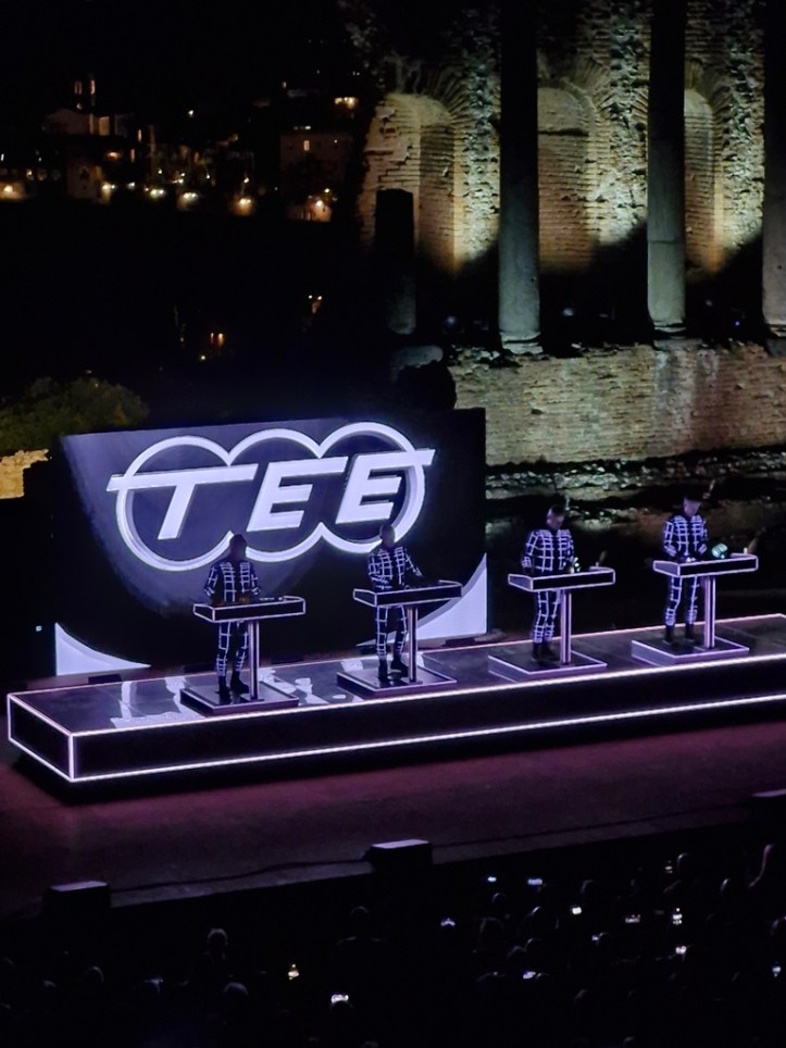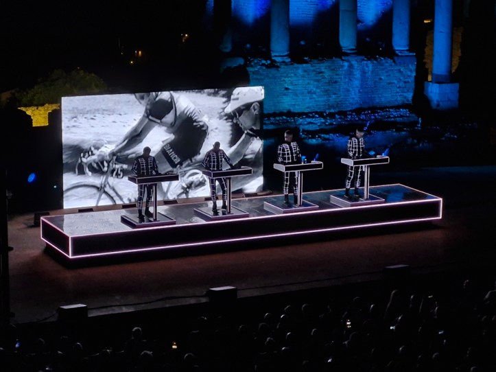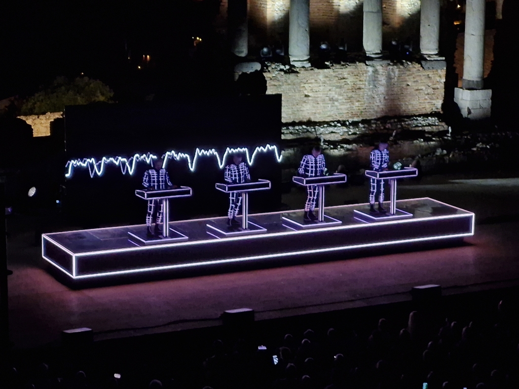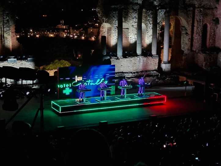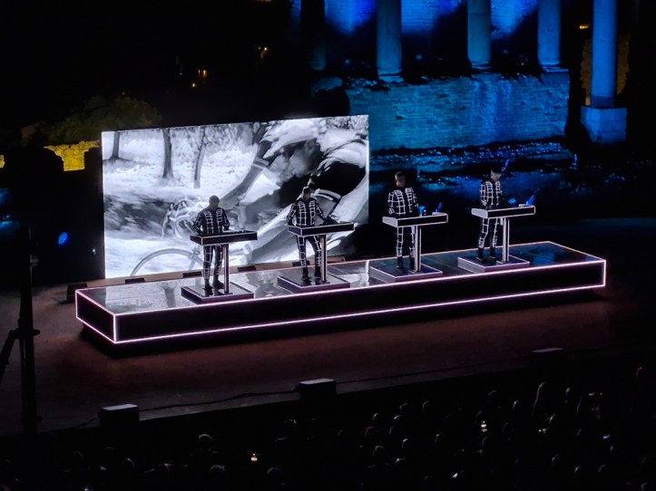 „Neon Licht“ – das hörte ich zum ersten Mal vor einigen Jahren auf einer reinen Cover-CD von Simple Minds, die auch noch „Neon Lights“ heißt. Danach noch einmal von OMD auf der Platte „Sugar Tax“ von 1991. Das das Original von Kraftwerk ist, wusste ich nicht. Hab mich aber umso mehr darüber gefreut, denn ob in Deutsch (so wie im Konzert) oder Englisch, es ist ein tolles Stück.
