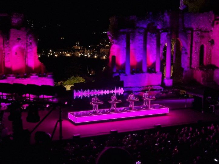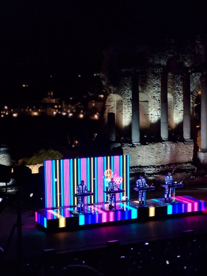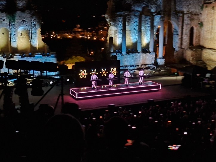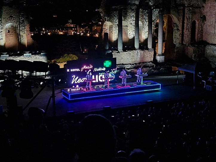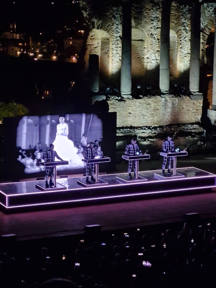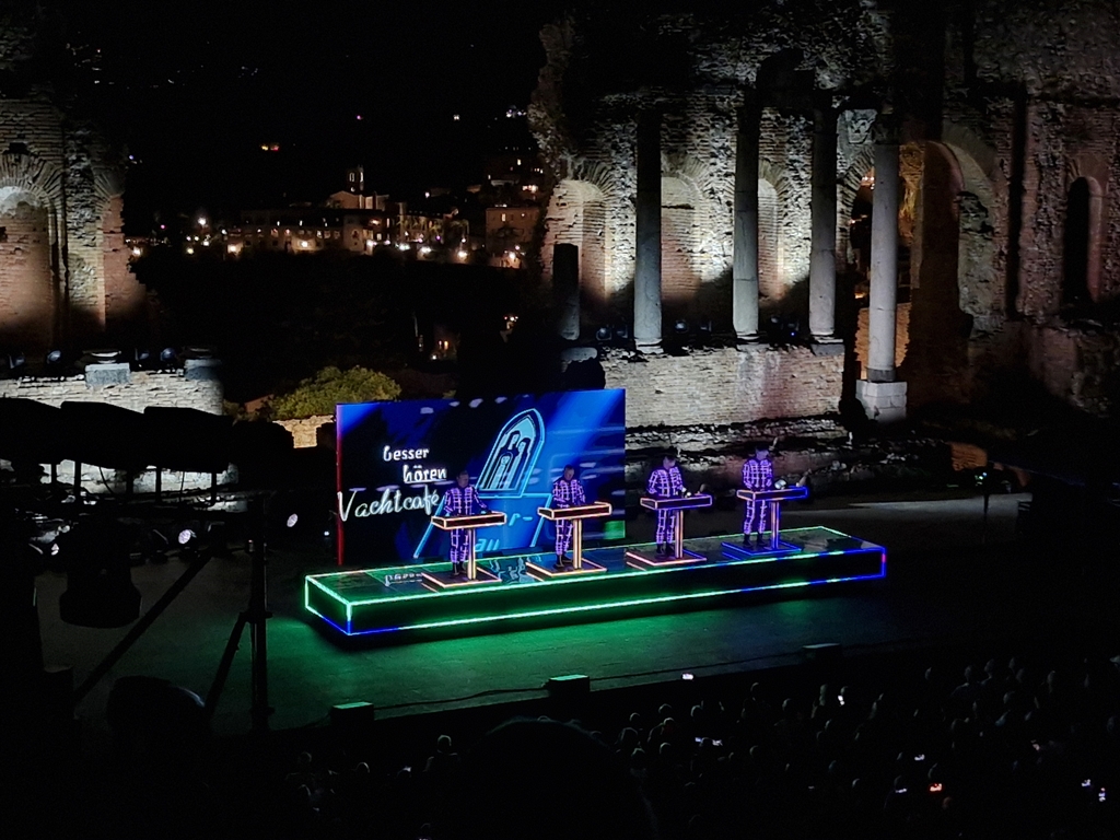 „Neon Licht“ – das hörte ich zum ersten Mal vor einigen Jahren auf einer reinen Cover-CD von Simple Minds, die auch noch „Neon Lights“ heißt. Danach noch einmal von OMD auf der Platte „Sugar Tax“ von 1991. Das das Original von Kraftwerk ist, wusste ich nicht. Hab mich aber umso mehr darüber gefreut, denn ob in Deutsch (so wie im Konzert) oder Englisch, es ist ein tolles Stück.