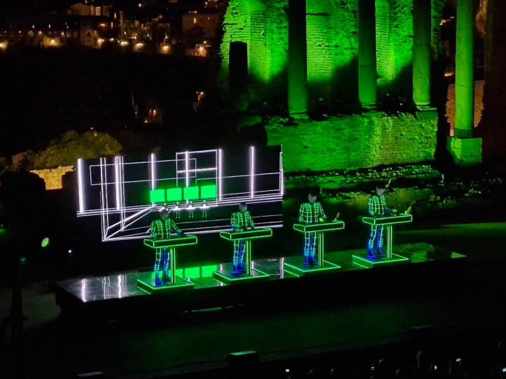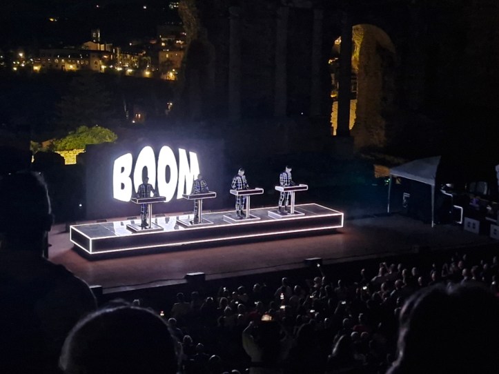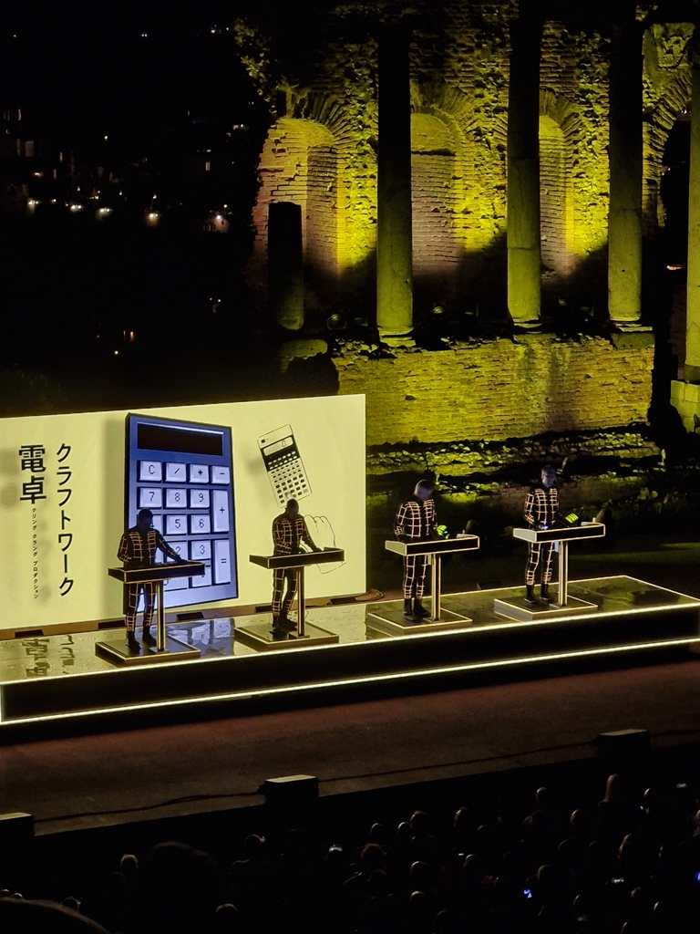 25. Juli 20254. August 2025 B.M. 25.07.2025 – Taormina – Kraftwerk – Teil 2 „Mini-Calculatore“ „Planet of Visions“ „Boing Boom Tschak / Techno Pop / Musique Non Stop“ Damit war der offizielle Teil des Konzertes zu Ende. Aber das beste kommt zum Schluss 😉 Teilen mit: Klicke, um auf X zu teilen (Wird in neuem Fenster geöffnet) X Klick, um auf Facebook zu teilen (Wird in neuem Fenster geöffnet) Facebook Gefällt mir Wird geladen … Ähnliche Beiträge