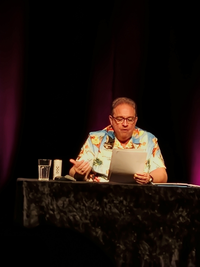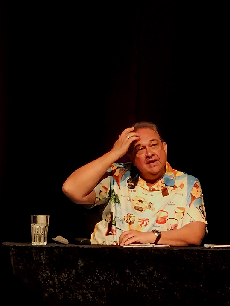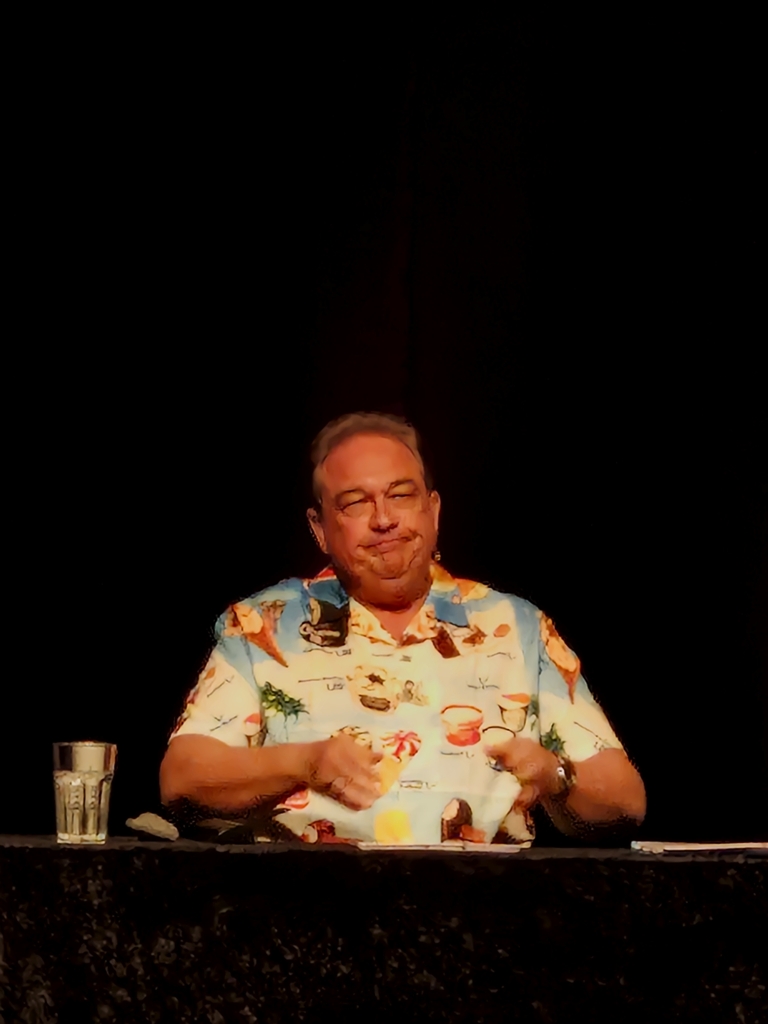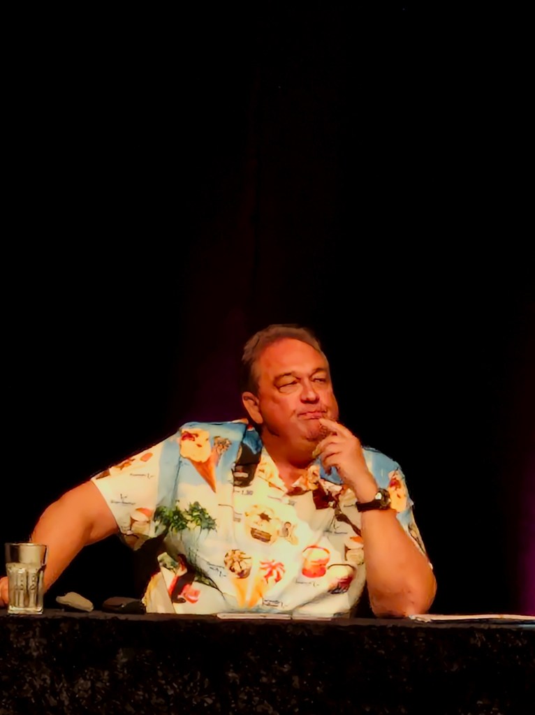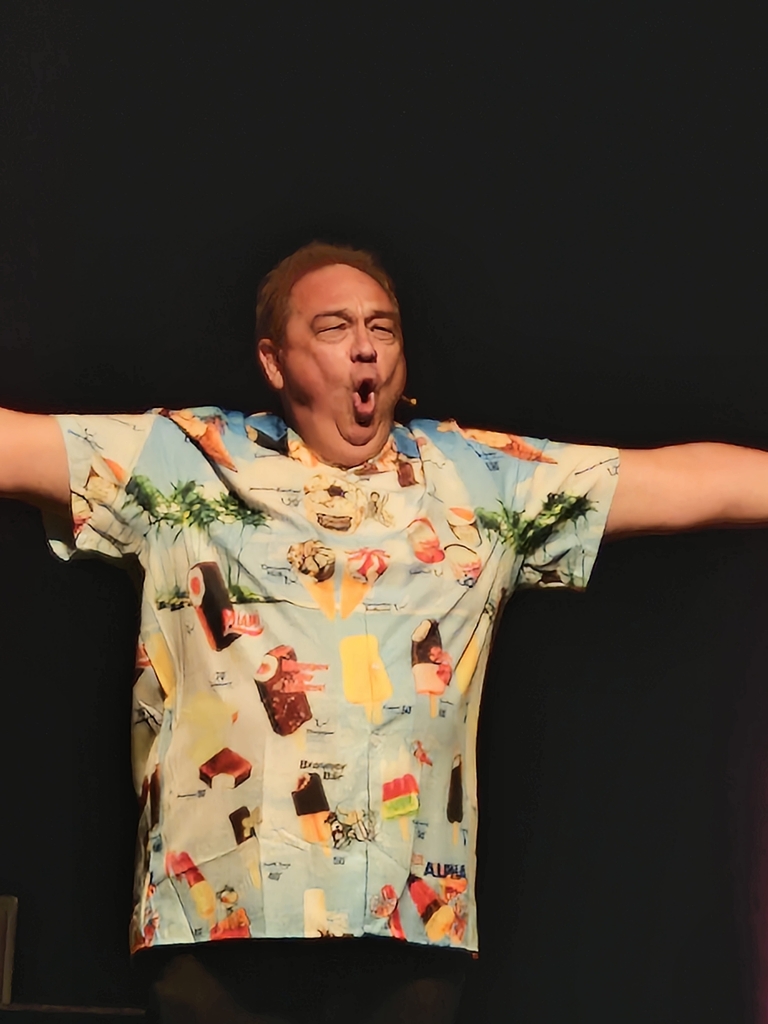 Das erste, was mir in den Kopf kam, als er auf die Bühne trat: Er trägt ein „Jürgen-von-der-Lippe-Gedächtnis-Hemd“. Dazu später mehr 😉