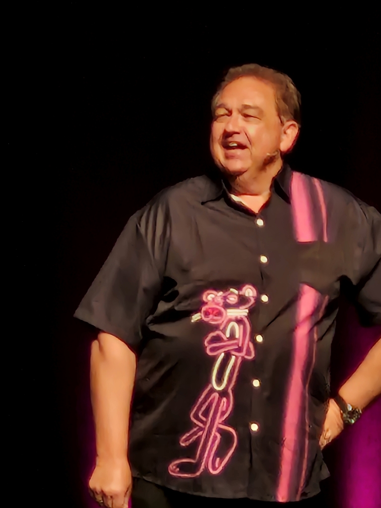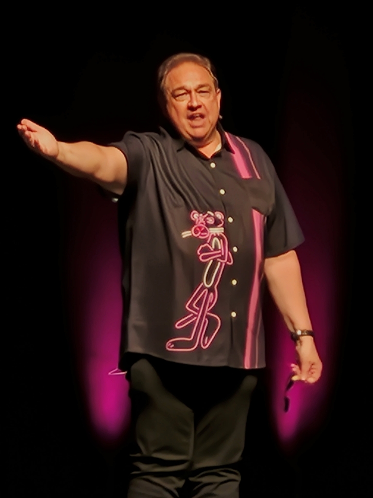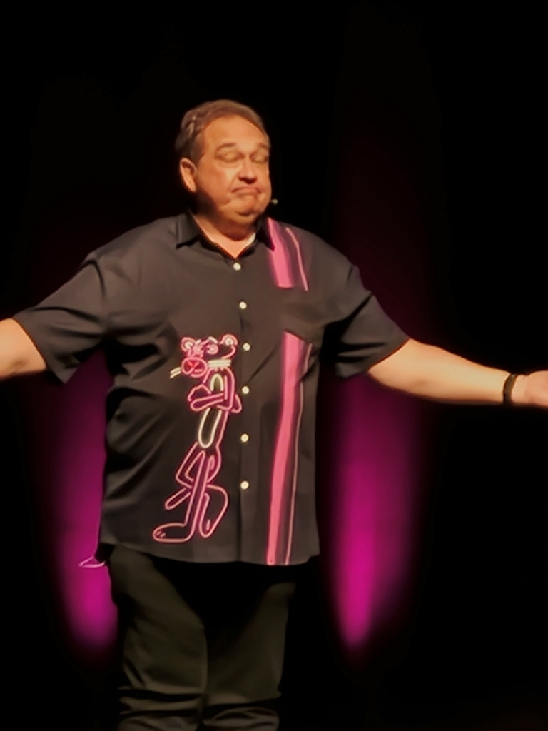 Nach einer Pause von 15 Minuten trat er mit dem Pink Panther Hemd auf