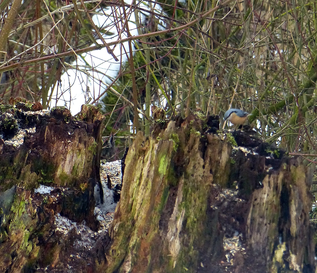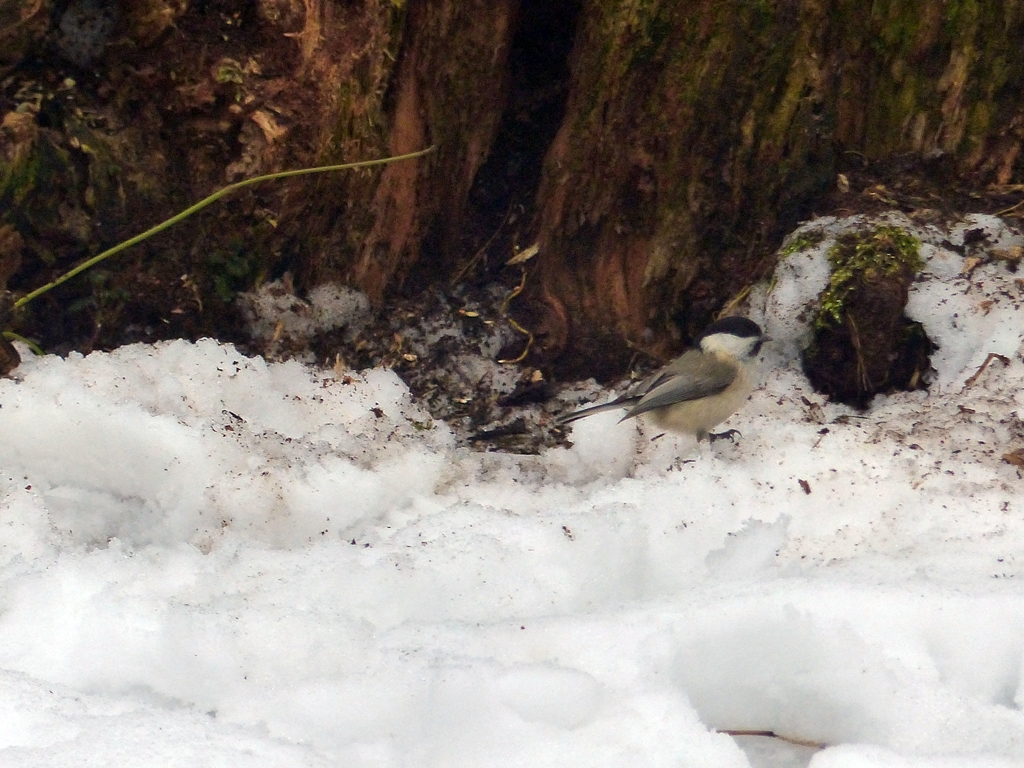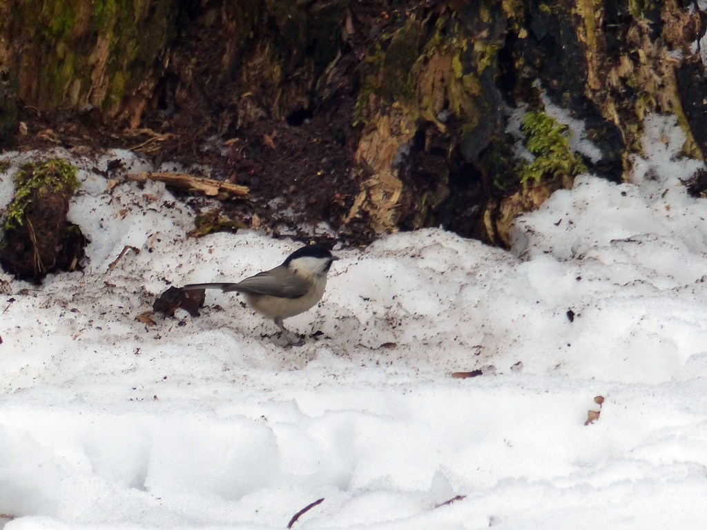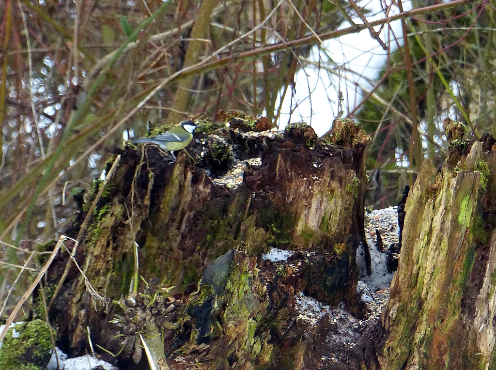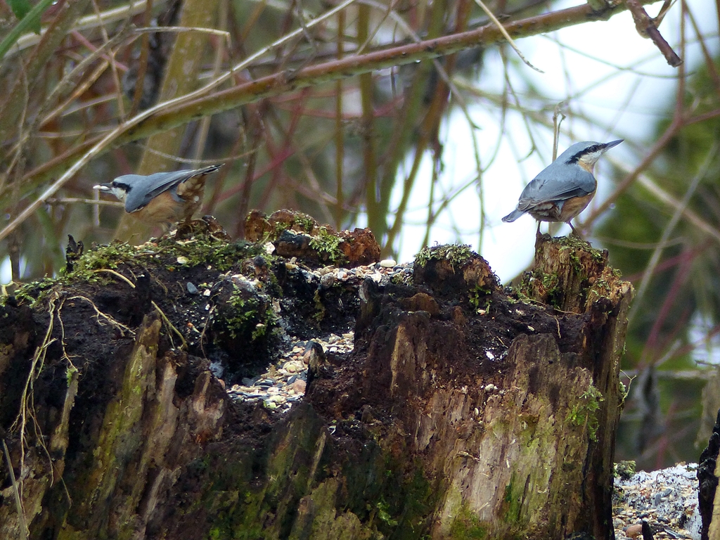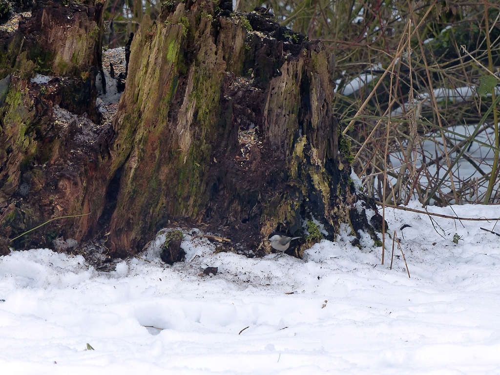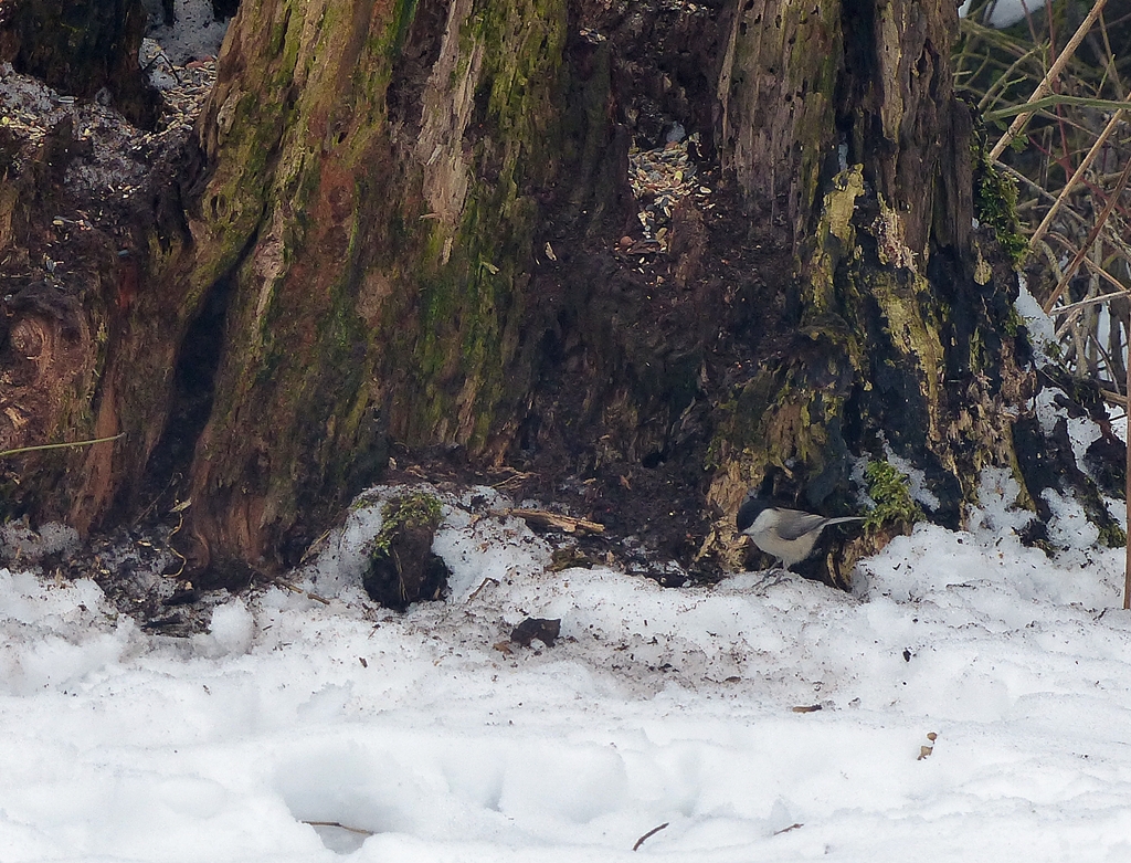War mir nicht sicher, da sich Sumpf- und Weidenmeise kaum unterscheiden (vor allen Dingen auf die Entfernung). Da aber ein Fotograf aus dem Nachbarort, der sich dort auch mal auf die Lauer legt, Sumpfmeisen fotografiert hat, gehe ich davon aus, das es Sumpfmeisen sind.