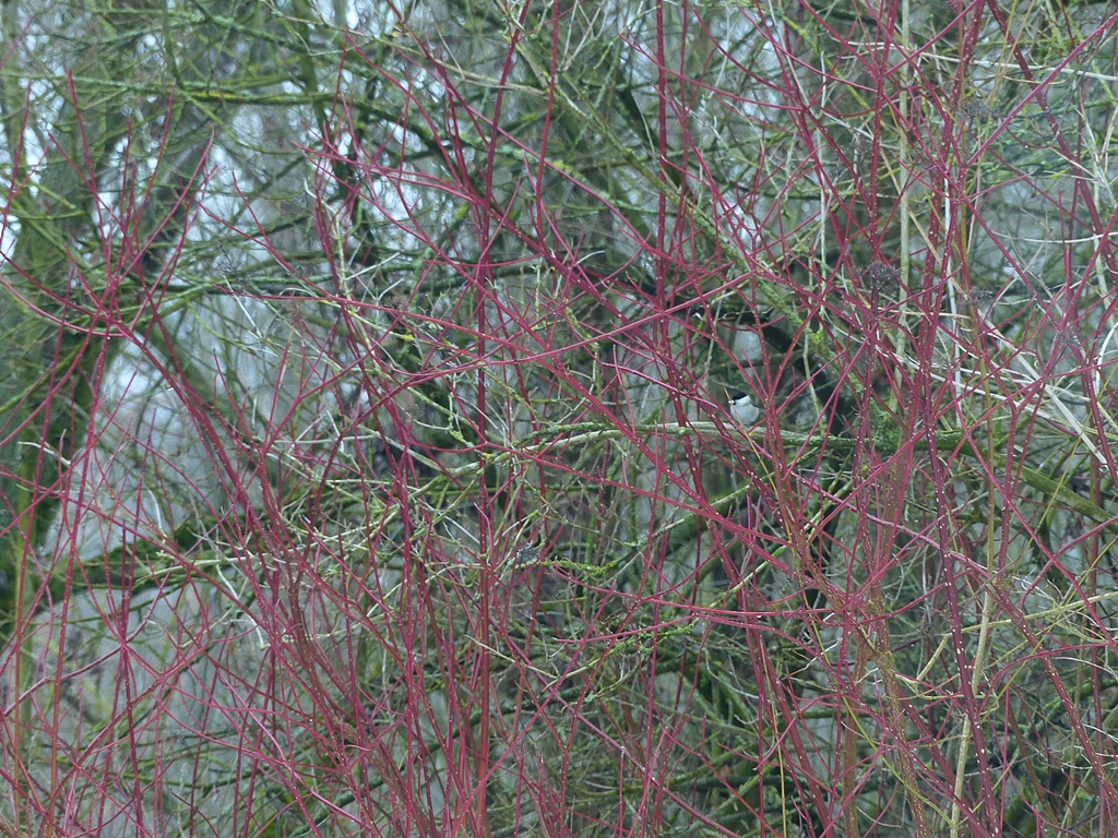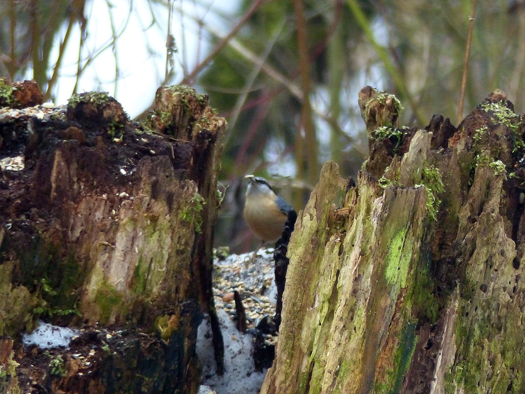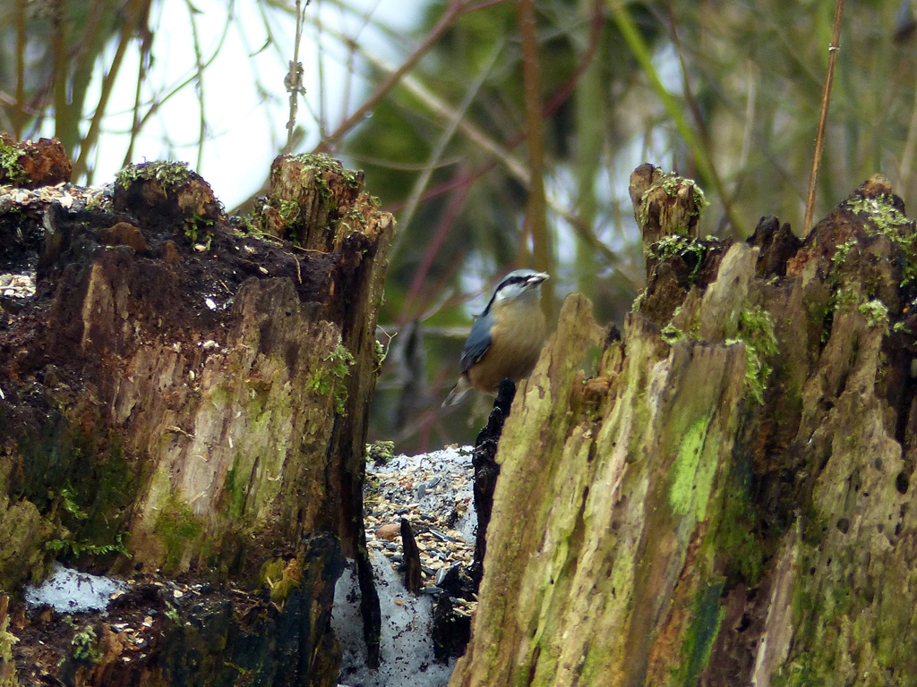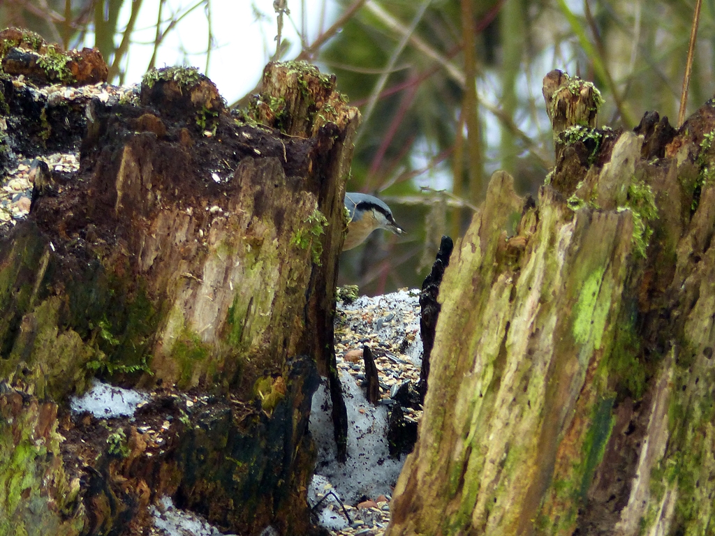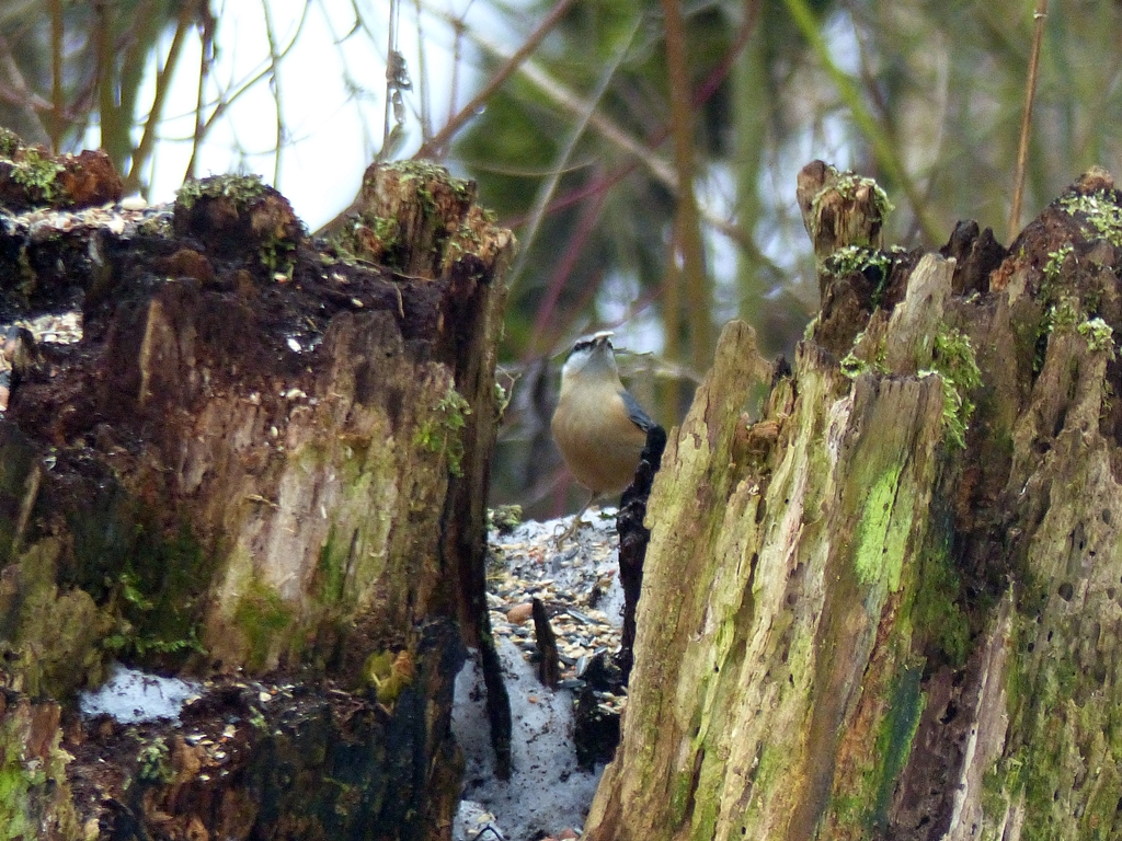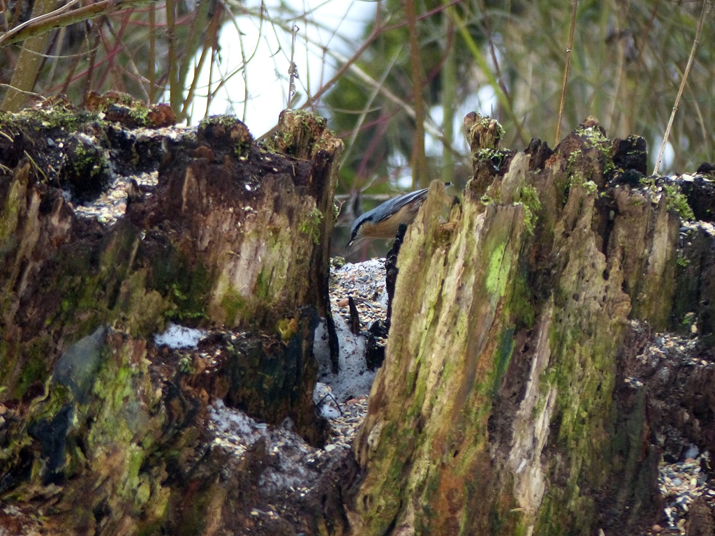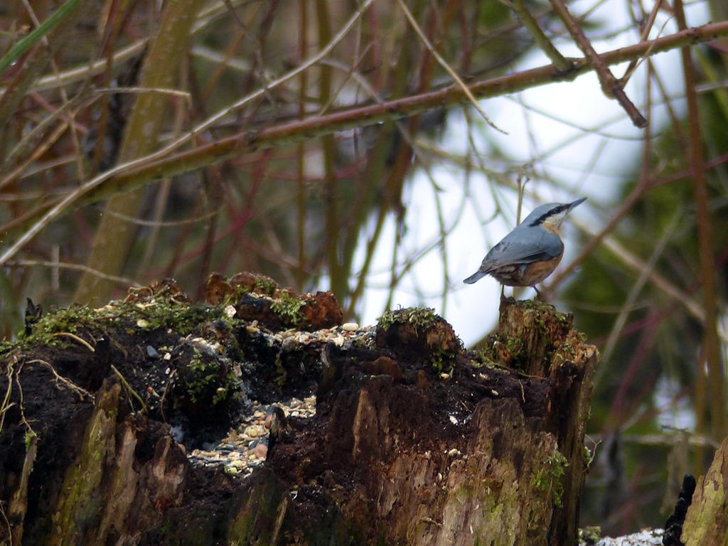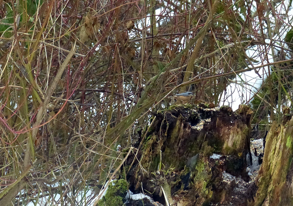 War mir nicht sicher, da sich Sumpf- und Weidenmeise kaum unterscheiden (vor allen Dingen auf die Entfernung). Da aber ein Fotograf aus dem Nachbarort, der sich dort auch mal auf die Lauer legt, Sumpfmeisen fotografiert hat, gehe ich davon aus, das es Sumpfmeisen sind.